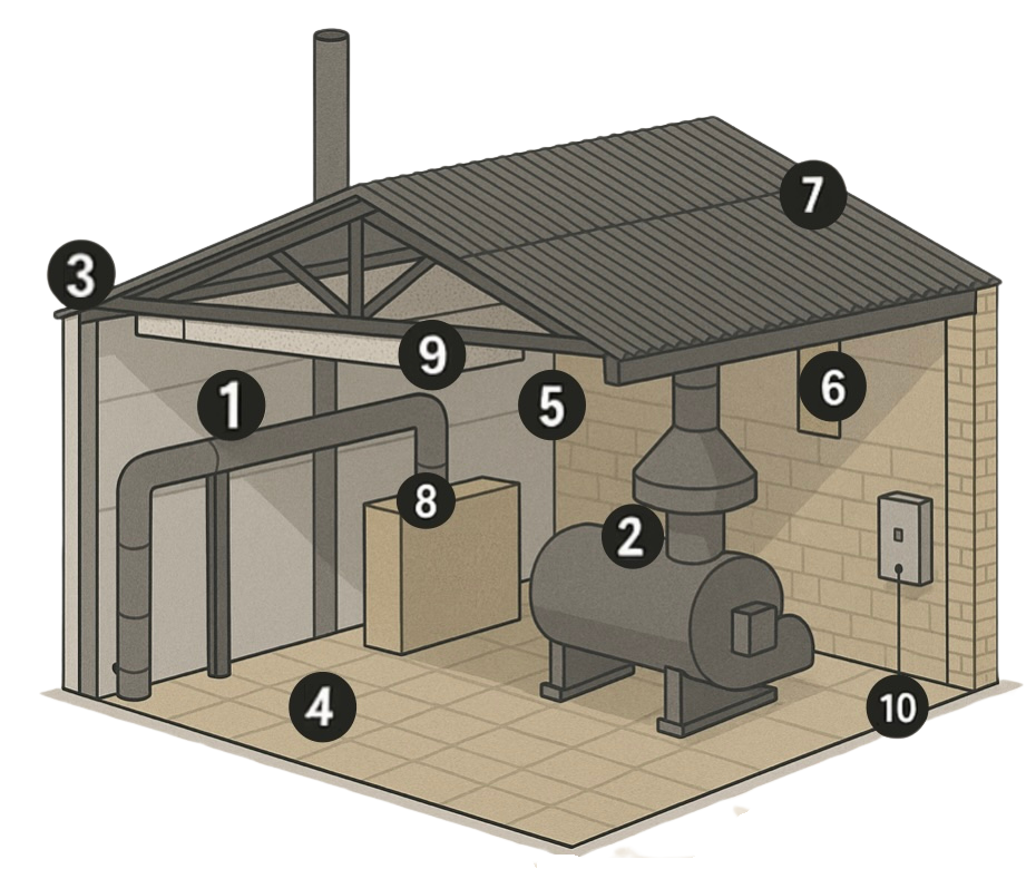 1. Μόνωση σωλήνων (γύρω από σωλήνες ατμού ή σωλήνες ζεστού νερού)